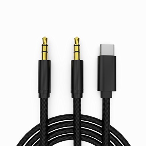 -. Feature : The audio quality transfer is fantastic, braided cord with a very sturdy metal build on the inputs. It will not loose ends. Moreover,it eliminate signal loss for your phone. / This cable have 2 x 3.5mm male and a type c ports ,it can compatible Motorola Moto Z, Samsung galaxy S8,Car Stereo, iPods, iPhones, iPads, Android Smartphone, Speaker Audio Jack ,laptop or other media-playing device on your headphones or Hi-Fi.It employs stain insulation, No hint of those loose or dirty connections.The consistency of the wiring is the perfect size to be low loss and sturdy. / Music sound clear and crisp without any mushiness or dullness, These cables pipe P.R.Istine sound on its way at each end of the connection flawlessly without a crackle or a pop. / Material : Nylon braided,it extremely durable ,redly ,Portable. This is a very nice long cord which makes it nice since you have extra room to set your device where you want it. / With one year warranty, any problem please feel free to contact us, we are always here to solve your problem.