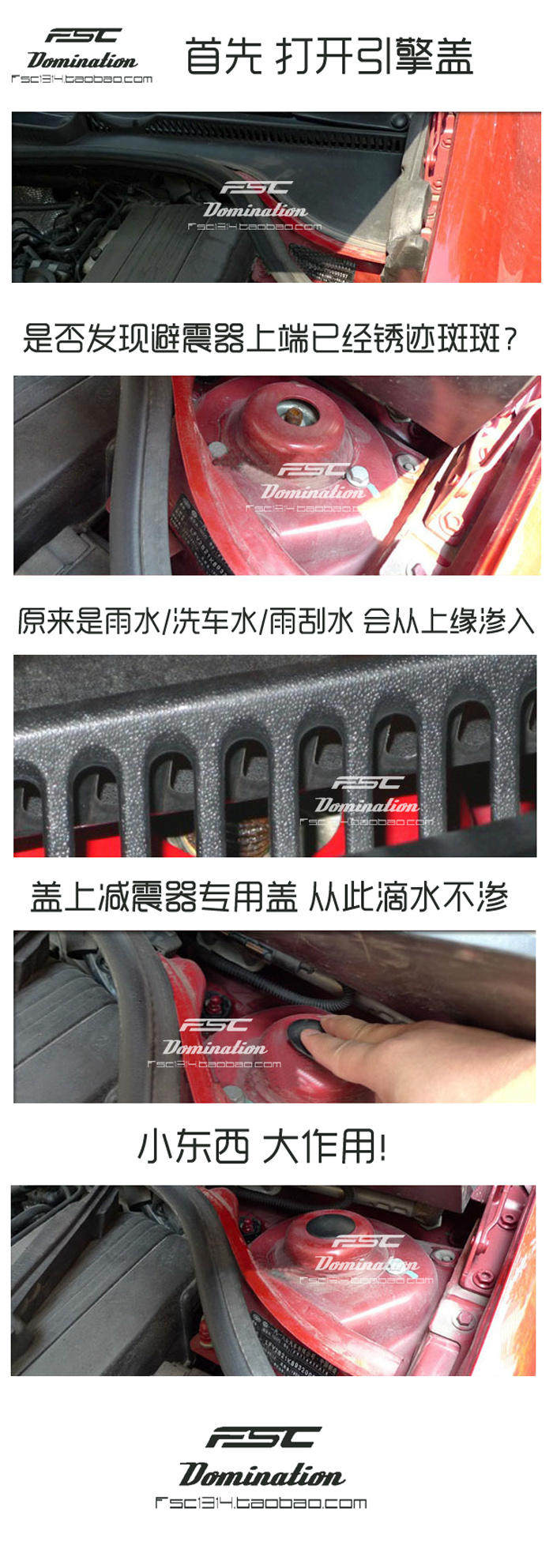用途: 解决国产大众车型 前减震器上盖减配 导致的避震器上端生锈