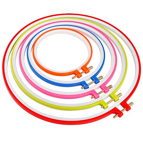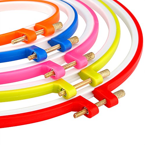 Caydo 5 Pieces 5 Colors Embroidery Hoops Plastic Cross Stitch Hoop Embroidery Circle Set, 4.7 Inch to 10.8 Inch