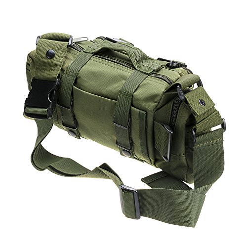 -. Feature : Material:durable Oxford / Gear Capacity N/A L / Shoulder strap: 48"(120cm) / Dimensions: 12.60 in x 8.27 in x 3.35 in (32.0 cm x 21.0 cm x 8.5 cm) / Functions: Breathable and comfortable; With large pocket on the back, can store water bag or books; Can be as waist bag, shoulder bag or handbag; Suitable for cycling, hiking, climbing and photographing, etc