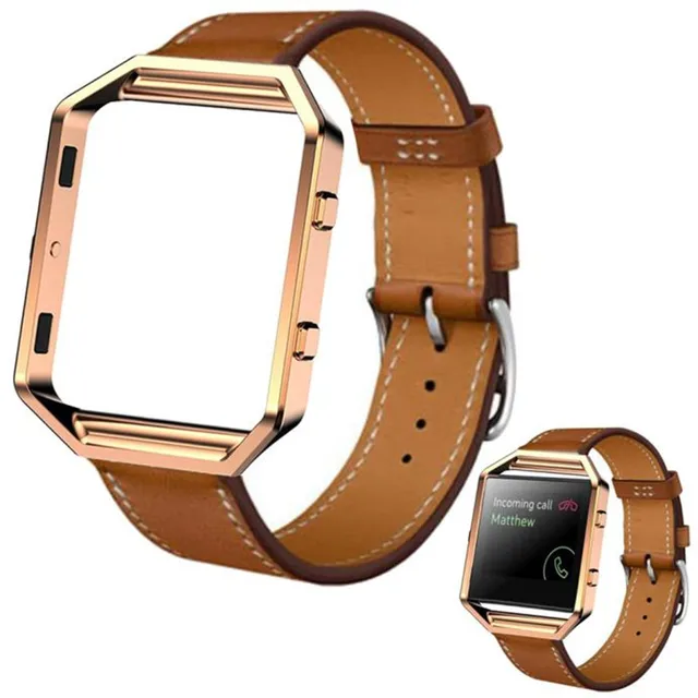 상품 내용 남성 여성 시계 시계 액세서리 고급 정품 가죽 시계 밴드 손목 스트랩 + 금속 프레임 핏 비트 블레이즈 스마트 시계 특징: