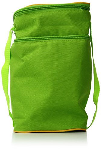 Perfect for a day's outing. The fully insulated 6 Bottle Cooler is perfect for a full day's supply of baby's feeding needs. Features leak proof lining that is PVC, lead and phthalate free. Lining pulls up for easy cleaning to prevent odors or mildew. Holds 6 standard bottles, or 3 bottles and Tupperware or small cereal box. Top compartment holds 3 food jars, utensils, and bibs. Includes reusable ice pack.