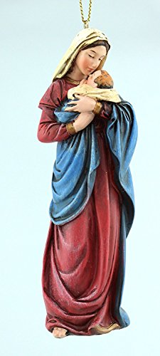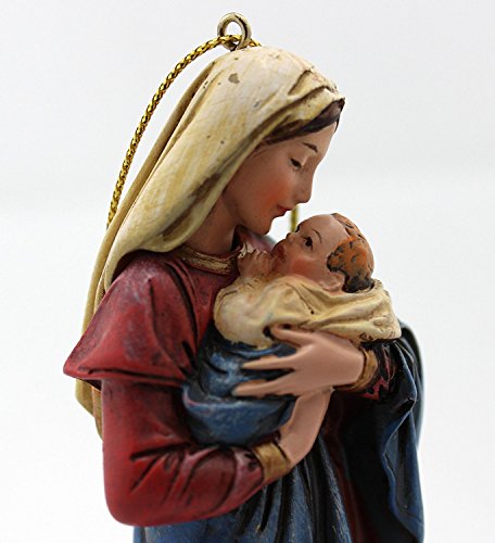 A Mother's Kiss Mary with Infant Jesus Resin Statue Christmas Ornament, 5 Inch