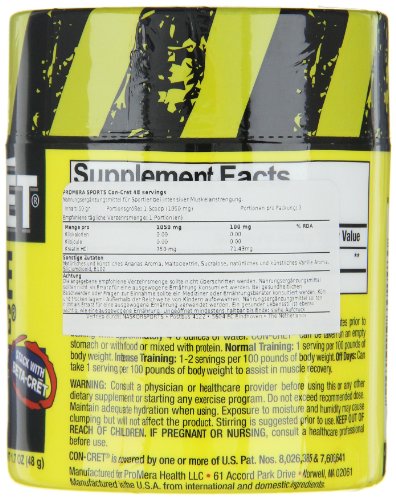 -. Binding : Health and Beauty -. Brand : ProMera Health -. Color : Parent -. Feature : CLA, Creatine, Post Workout, Protein -. Label : ProMera Health -. LegalDisclaimer : Actual product packaging and materials may contain more and different information than what is shown on our website. We recommend that you do not rely solely on the information presented and that you always read labels, warnings, and directions before using or consuming a product. Please see our full disclaimer below. -. Manufacturer : ProMera Health -. Model : 263046473 -. PackageQuantity : 1 -. ProductGroup : Health and Beauty -. ProductTypeName : HEALTH_PERSONAL_CARE -. Publisher : ProMera Health -. Studio : ProMera Health -. Title : Promera Health Con-cret