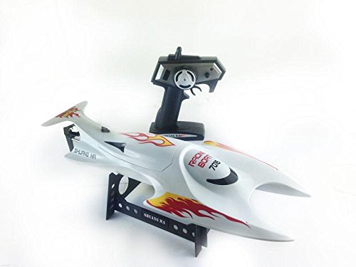 - Feature : 7016 2.4G high speed RC boat / Top speed 30KM/h, Water cooler function , Powerful high speed motor / Professional large torsion propeller, Build in server / Stop setting when leaving the water, Function:go forward,backward,turn left and right,with righting function / Product Size :17.6 x 7 x 3.5 inches ( 45*17.5*8.5cm )