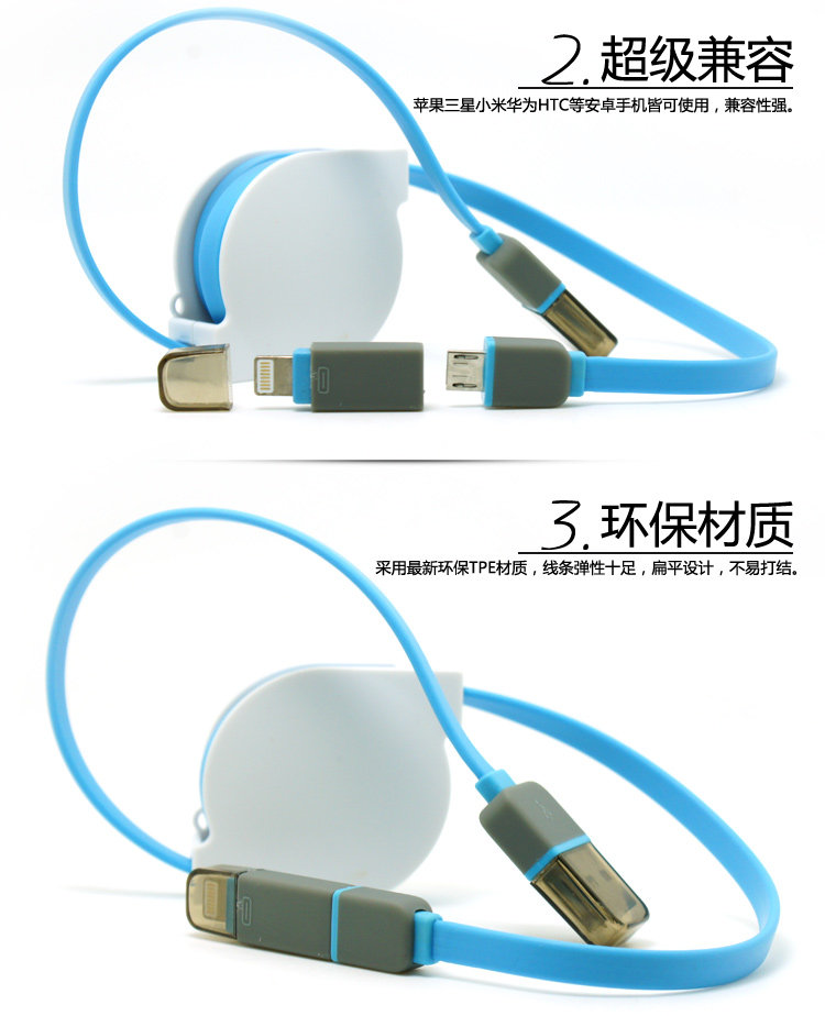 Data Charging Combo perfect support iPhone5S / 5 / 5C / mini / mini2 / iPad4 / iPad Air iOS7 system beyond the original. Also applies to Samsung, HTC, millet, Nokia, Lenovo Huawei and so on. Exclusively designed using international standards, strong anti-oxidation; two-sided eight contacts, regardless of the pros and cons, and faster! Perfect support IOS7, powerful and practical features, both for the Android mobile phone charging, but also for iPhone5 / 5s charging, you can charge for a common mobile power