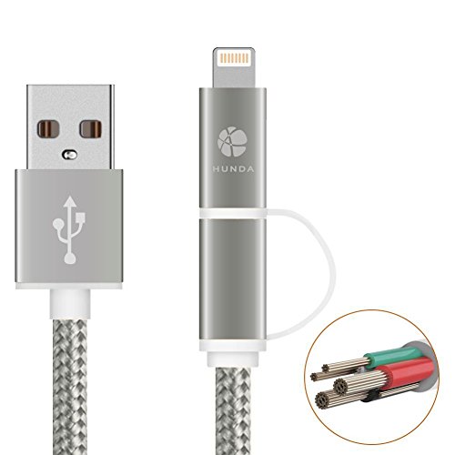 [Apple MFi Certified] 2 in 1 Dual Lightning USB Cable 3ft 1 M , HUNDA Nylon Braided USB Connector for Any Android and Apple Devices such as iPhone, iPad, Samsung, HTC, Nexus,Sony and more (Gray)