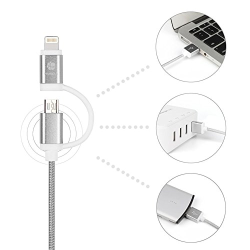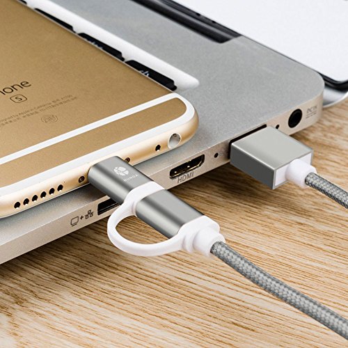 Apple MFi Certified Lightning cable, 100% compatible with ios 9 and no warning message. 3.3 feet 2in1 ( micro USB connector with 8 pin adapter) design makes the cable compatiblw with both Apple system and Android system devices.