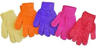 -. Feature : 5 Pair Exfoliating Bath Gloves Assorted Colors / Unclogs pores and revitalizes dull, tired skin. Will leave you clean and invigorated. Increases lather of your soap or body wash / For Men and Women. Nylon exfoliating gloves. Colors may vary depending on stock availability. Best bath and shower gloves for removal of dead skin cells, skin rejuvenation, wrinkle, scar and cellulite reduction. / Our gloves stretch to fit any hand. Rinse after use and hang to dry / Removes dead skin cells and increases blood flow, reducing cellulite and improving the condition of your skin. Promotes healthy skin and helps repair damaged skin.