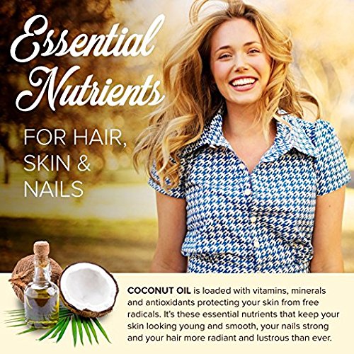 ✅ ESSENTIAL NUTRIENTS: Coconut oil is loaded with vitamins, minerals and antioxidants protecting your skin from free radicals. Its these essential nutrients that keeps your skin looking young and smooth, your nails strong and your hair more radiant and lustrous than ever.