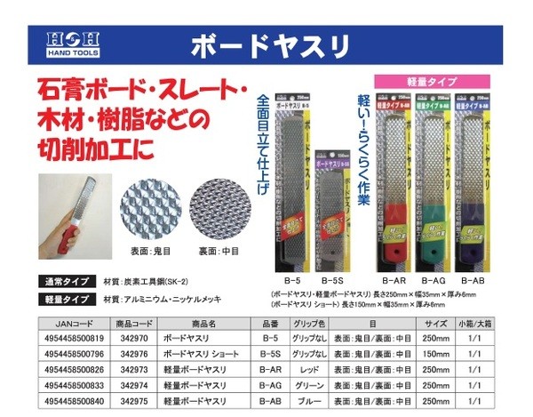 【商品名】(業務用10個セット) H&H ボードヤスリ ショート 【表面:鬼目/裏面:中目】 サイズ:150mm B-5S 〔DIY用品/大工道具〕