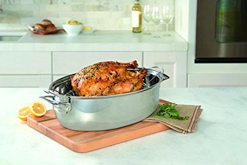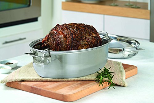 Studio : Viking Publisher : Viking Binding : Kitchen Product Description The Viking 9- quart. 3-in 1 Roaster is an incredibly versatile cooking vessel that can be used in a variety of ways. Use it as a conventional open roaster for whole chickens, turkeys, or beef roasts. Or use the 4 quart. lid to convert it into a Dutch oven. The roaster's oval shape promotes a convection effect to heat food more quickly, while its 3-Ply construction through out the vessel makes rue heat is distributed evenly, eliminating any "cold" spots. The lid can also be used separately as a saute pan, casserole, or sauce pan. while its beautiful mirror finish makes it a beautiful serving dish fit for any table. Both roaster and lid are perfect for all cooking methods, including induction. The dual-level elevated stainless wire rack prevents burning and can hang from the sides for easy draining to make sure that every drip of sauce is saved. Oven safe to 600F, the 3 -in 1 Oval Roaster is dishwasher safe and comes with a lifetime limited warranty. 0