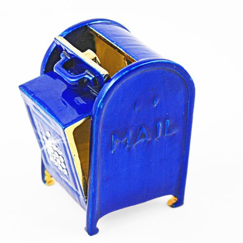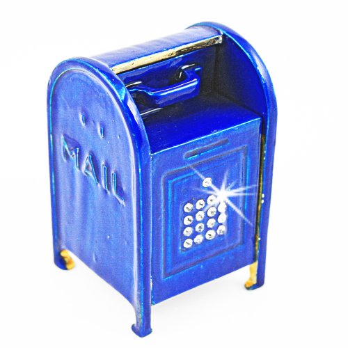 - Title : Objet D'Art Release #90 "Stamps" US Postal Service Traditional Blue Post Box Handmade Jeweled Enameled Metal Trinket Box