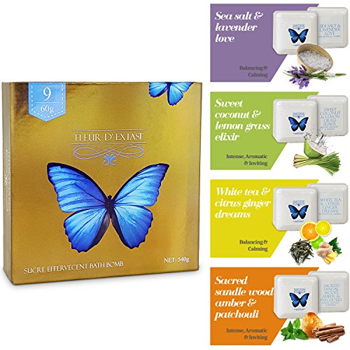 Organic Bath Bombs Natural Bath Bomb Gift Set - Set Of 9 French Ecstacy Bathbomb Essential Oil Effervescent Spa Fizzies