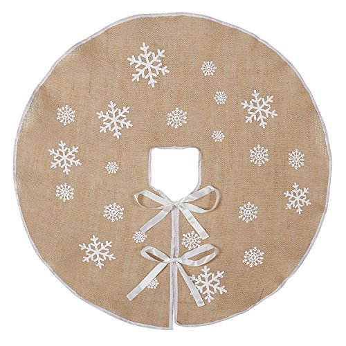 Macting Burlap Snowflake Christmas Tree Skirt Ornament 30Inch Diameter Christmas Country New Year Holiday Decoration