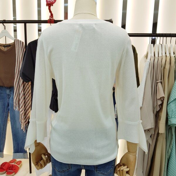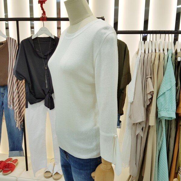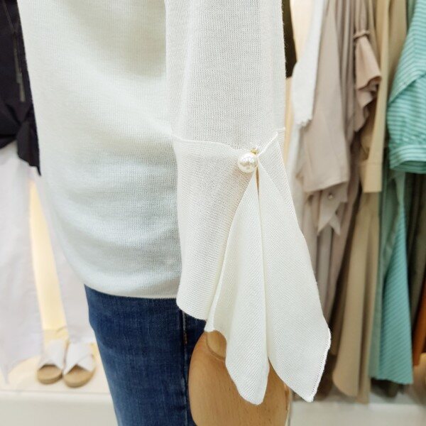 깔끔하고 단정한 라운드와 소매 진주장식으로 여성미와 고급스러움이 돋보이는 니트입니다.소재가 부드럽고 신축성이 뛰어납니다.