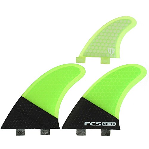 Studio : Fcs Publisher : Fcs Binding : Misc. Product Description FCS MR TFX Carbon Tri Fin Set. Medium Tri Fin Set. Base: 5.06 / 128mm. Depth: 5.58" / 142mm. Area: 21.05"2 / 13580mm2. Sweep: 33.0 degrees. MR's famous twin template produces exceptional drive and speed. The small stabilizer (centre fin) adds control whilst maintaining the freedom and manoeuvrability of a twin fin set up. Vendor style #:112221200R ." 0