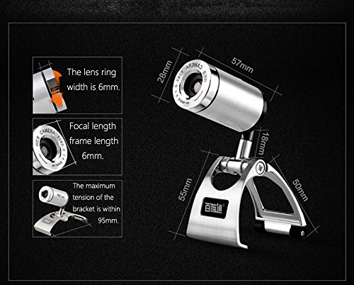 -. Feature : It compatible with Windows 7/8/10、XP, vista and mac. / Button with shooting function, can adjust the focal length, USB for plug and play. / 5 layers high-definition full glass coating lens group make the video look better. / Built-in stealth noise reduction microphone, can maintain a clear sound quality, so that the video call even better. / Metal material, the base can be 180 degrees adjustment, easy to fixed or placed on the desktop.