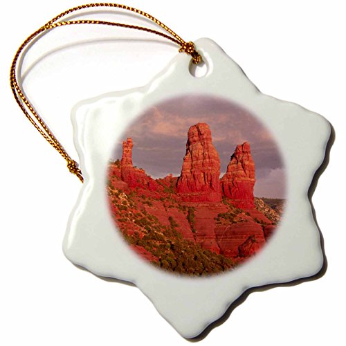 3dRose Orn_45781_1 Red Rock Formations Sedona Arizona Snowflake Decorative Hanging Ornament, Porcelain, 3-Inch