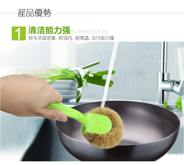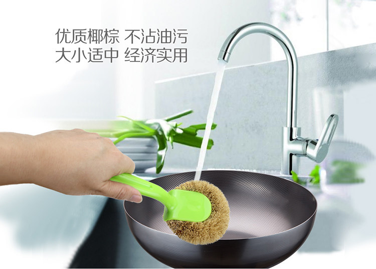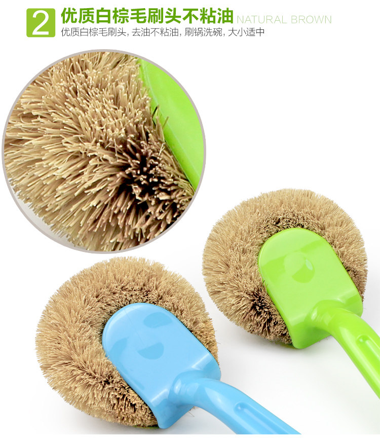 天然椰棕锅刷子 加长柄不粘油厨房清洁洗锅洗碗刷子刷锅神器2个装