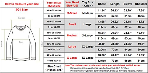 US Large Chest: 46.8' / 120cm, Length: 28.08' / 72m, Sleeve: 24.96' / 64cm, Shoulder: 19.5' / 50cm, Your actual chest size 39 to 40 inches / 99 to 102 cm