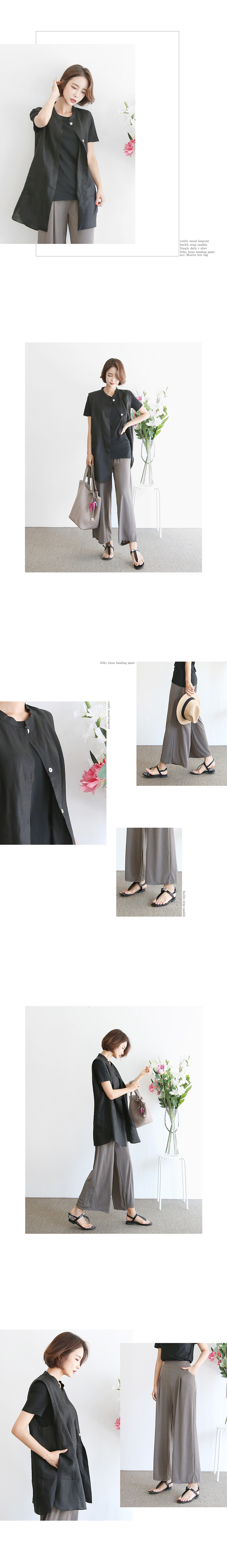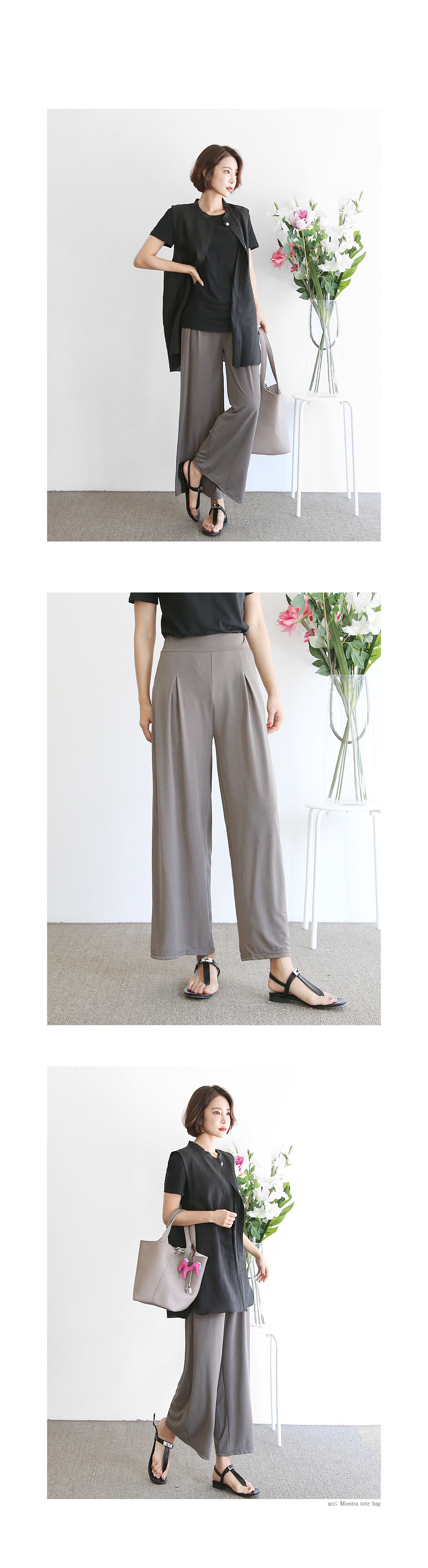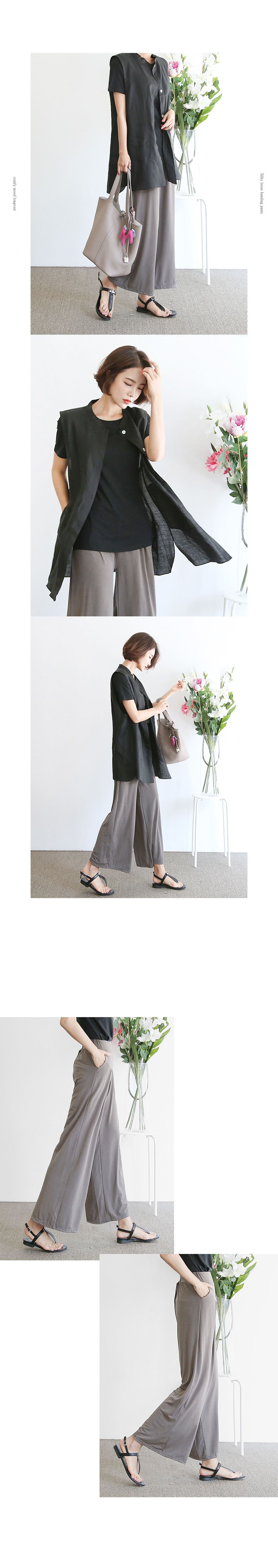걸음마다 찰랑거리는 와이드한 팬츠라인이 멋스럽습니다