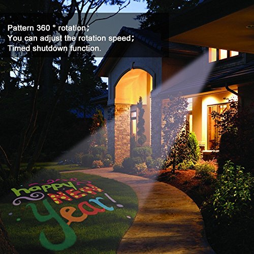 - ★Brighter and Energy Efficient - The projector lamp presents high resolution sharp pattern which can rotate 360 degree with rotation speed adjustable.The projected pattern can be changed easily by a screw. Adopting high quality LED beads,this holiday projector lights is more brighter (1200 lm) and energy-saving(6 hours auto-power off).While other led light projector outdoor Halloween is ONLY 110lm.