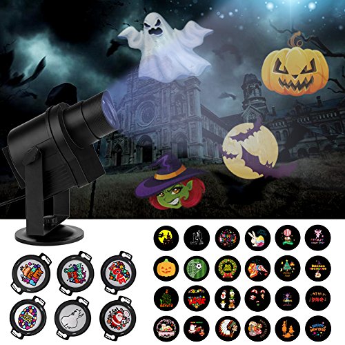 - ★6+24+DIY Gobos - This outdoor projection lights comes with 6+24pcs gobos,besides,the Halloween decor also supports DIY gobos by yourself on transparent paper(2pcs transparent papers included).You can share your ideals and thoughts freely with your family and friends such as family photos,congratulations,loved star photos and other exciting thoughts etc.