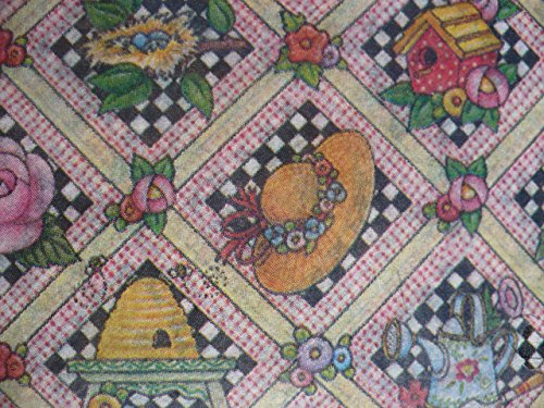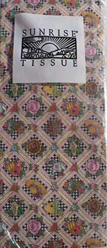 Product Description beehives, hats, birdhouses, sunflowers, watering cants, baskets, Roses, Bird Nets in small 1 in. by 1 in. squares - Mary Engelbreit Tissue Paper - 4 Sheets 0