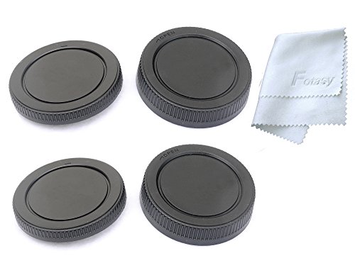 Fotasy MA2X 2x Rear Lens Cover, Camera Body Cap Set and Cleaning Cloth for MFT Micro 4/3 M43 Mirror Less Camera (Black)