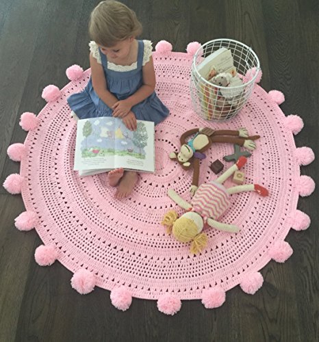 Pom Pom Playmat Handmade From Softest Cottons for Baby in Fun Designs Crochet Blanket (Pink)