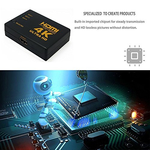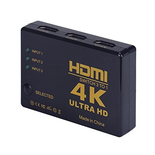HDMI Switch includes IR Wireless remote control | with booster | 3 Port switch-- 3 x in / 1 x out | Ultra HD 4k/ Dolby True HD | intelligent Switch - automatic and manual switch function.