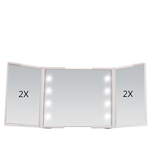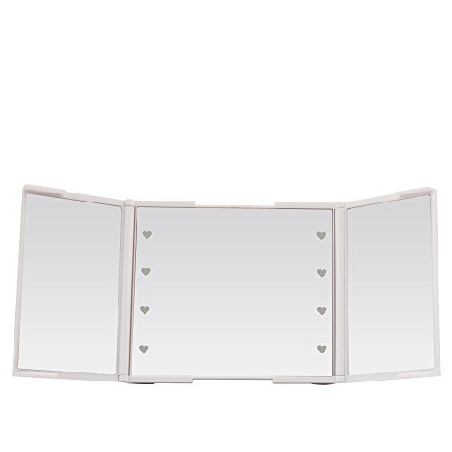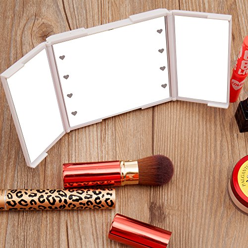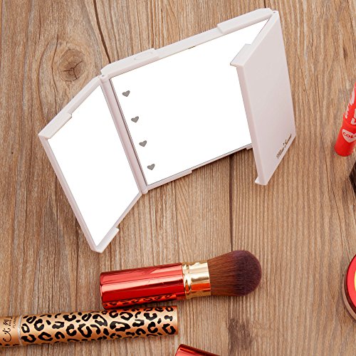 Miss Sweet Led Lighted Tri-Fold Compact Mirror Purse Mirror Pocket Mirror Travel Mirror Compact for Beauty Makeup,True image& 2X magnification (White)