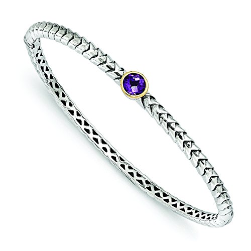 ICECARATS DESIGNER JEWELRY 925 STERLING SILVER 14K PURPLE AMETHYST BANGLE BRACELET CUFF EXPANDABLE STACKABLE FOR WOMEN