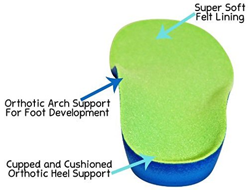 -. Binding : Misc. -. Brand : LOTGO -. Color : Green -. Feature : LOTGO Orthotics are crafted from premium medical grade PU foam for children with heel and arch problems. / Revolutionary new soft step material to increase Orthotic comfort. / Currently come in two sizes. 20 CM fits US Kids Shoe Sizes: 12-1.5; and 24 CM fits US Kids Shoe Sizes 2-7. / LOTGO's orthodics are designed to mold over time to fit each unique foot. It's a perfect resolution to heel pain and arch pain. / UNIVERSAL USE -- Great for all shoes, including cleats and tennis shoes. Increase comfort and performance with your first pair of LOTGO! -. IsAutographed : 0 -. IsMemorabilia : 0 -. Label : LOTGO -. Manufacturer : LOTGO -. MPN : LP-5 -. PartNumber : LP-5 -. ProductGroup : Sports -. ProductTypeName : SPORTING_GOODS -. Publisher : LOTGO -. Studio : LOTGO -. Title : Neon Fix Premium Grade Orthotic Insole, Revolutionary Soft and Sturdy Orthotic Technology For Children With Foot Development Issues and Flat Feet and Arch Support Issues