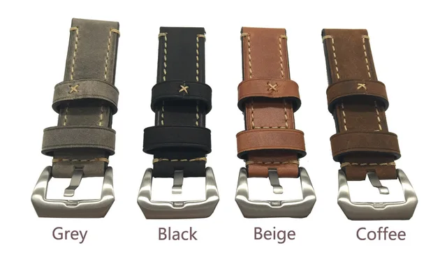 상품 내용 1 개 20 미리메터 22 미리메터 24 미리메터 26 미리메터 정품 가죽 미친 말 가죽 손목 시계 스트랩 남자 시계 스트랩 블랙 커피 회색