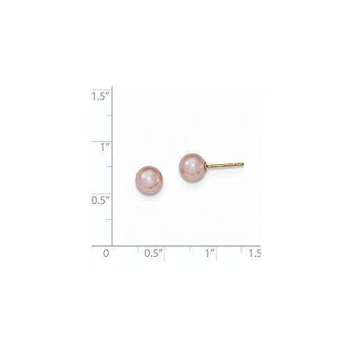 Solid 14k Yellow Gold 6-7mm Purple Round FW Cultured Pearl Stud Earrings