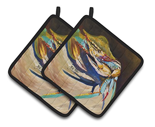 Caroline's Treasures Crab To Claw Up Crab Pair of Pot Holders JMK1258PTHD, 7.5HX7.5W, Multicolor