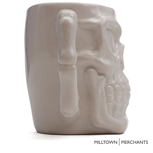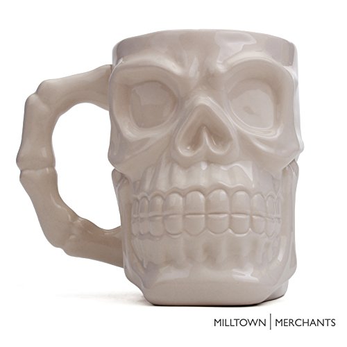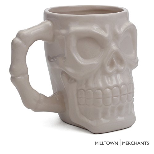 Milltown Merchants™ White Skull Mug - Skull Beer Stein Tankard - Ceramic Skull Coffee Mug - Gothic Beer Mug - HUGE 32 Ounce Capacity