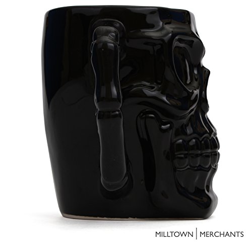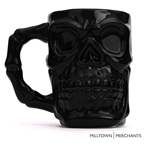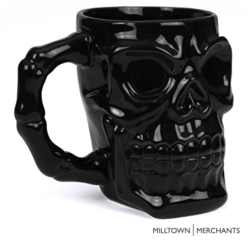 Milltown Merchants™ Black Skull Mug - Skull Beer Stein Tankard - Ceramic Skull Coffee Mug - Gothic Beer Mug - HUGE 32 Ounce Capacity