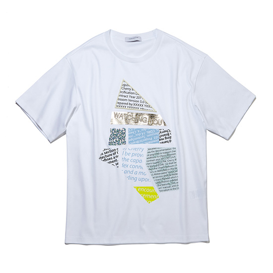 - 금박 프린트와 자수를 믹스하여 시즌 컨셉에 맞는 아트워크 포인트.
