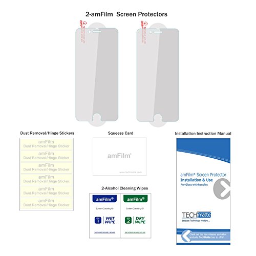 amFilm Premium GLASS Protectors are the latest in state-of-the-art screen protection technology. Highly durable and scratch resistant/chip resistant, this strong 9H (hardness level) protector will guarantee your cell phone the best protection against drops, bumps, scratches and normal wear and tear. Get all the protection without any bulk - amFilm Glass protectors are a mere .33mm thin making them ultra-light weight to allow for a 'delicate touch' style screen protector that promises not to interfere with the sensitivity of your touchscreen. To top it all off the amFilm GLASS protectors are designed to be 99.99% transparent to promote an optimal, natural, crystal clear viewing experience. Backed by our Easy Install Guarantee - simply align the protector with your device and a simple swipe of your finger adheres the protector to your screen.