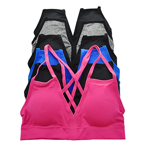 -. Binding : Apparel -. Brand : Angelina -. Department : womens -. Feature : Wire-free seamless bras with removable insert pads / Pull-on closure with criss-cross back design / 90% Nylon, 10% Spandex / S/M fits 32B to 36C; L/XL fits 34D to 38D. / Machine wash in lingerie laundry bag, line dry. For better results, hand wash. -. ProductGroup : Apparel -. ProductTypeName : BRA -. Title : Angelina 6-Pack Wire-Free Seamless Bras with Criss-Cross Back