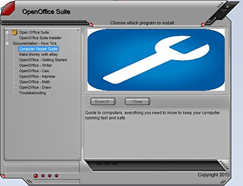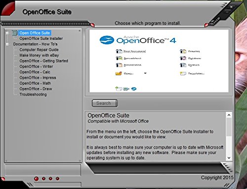 Open Office suite software, compatible with Microsoft office programs. Create, edit, modify office suite files. Can also work as a PDF creator, Writer will allow you to export your document as a PDF file. Great for home, students and business use. Email support provided. 42 page computer guide (by ewholesaledirect), about computers, building computers and how to protect your computer. The computer repair guide is in digital format as a PDF located on the CD. Digital versions of the software manuals are also included on the CD. This software will run on Windows 10, 8, 7, Vista and XP. This software is compatible with Microsoft Office files and can interact with Microsoft Sharepoint.Feature