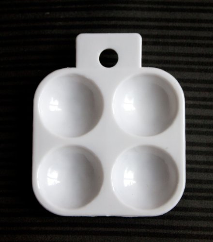 -. Feature : Small size perfect design for kids. Suitable for all water based media. / Palette Dimension : 3.3 x 3.3 inches (8.5 x 8.5 cm) / All you need is your imagination to start creating a variety of projects / Made of molded white plastic, it is durable and easy to clean / plastic palette contains four shallow wells for paint mixing