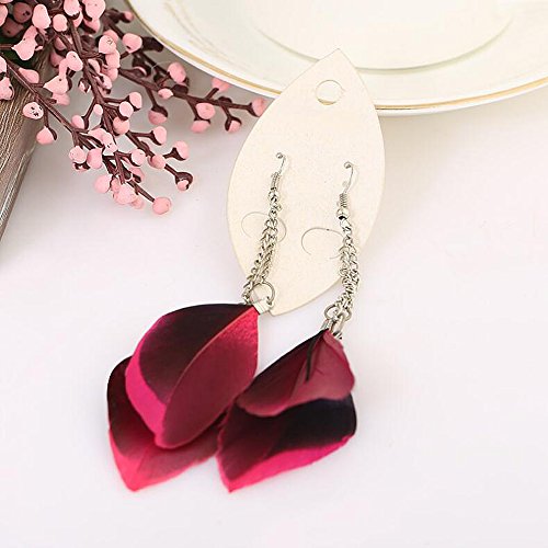 -. Title : A&C Fashion Bohemia Red Feather Dangle Earrings Jewelry for Women, Hot Sell Indian Feather Eardrop for Girls.