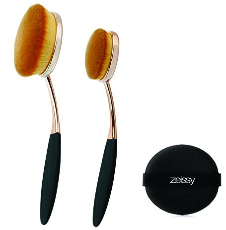 Gold Rose Oval Foundation Brushes Flawless Coverage Of Your Favorite Foundation And One Zeissy Sponge Puff ( Rose/Gold)