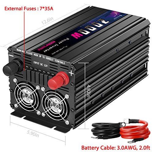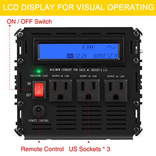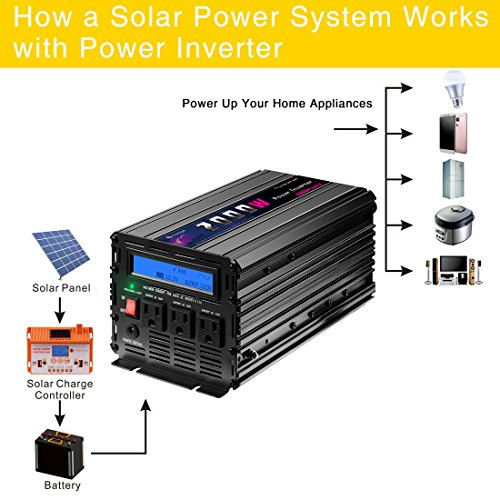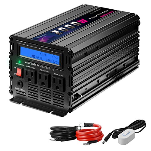 Novopal 2000 Watt PURE SINE WAVE Power Inverter 3 AC Outlets DC 12v to AC 120v with Remote Control, Big LCD Display( Surge 4000W, Black)