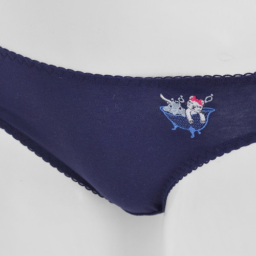 면 솔리드 원단 위에 귀여운 목욕하는 고양이 자수가 돋보이는 디자인입니다.