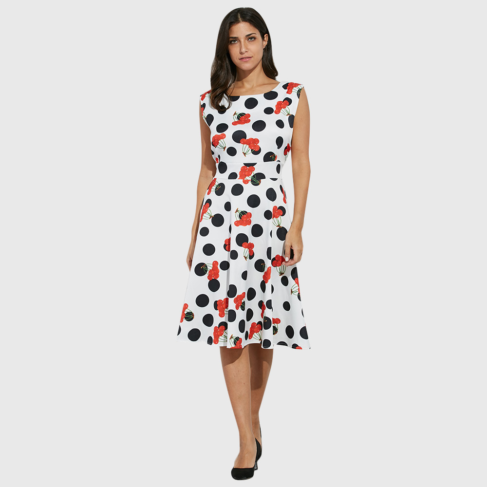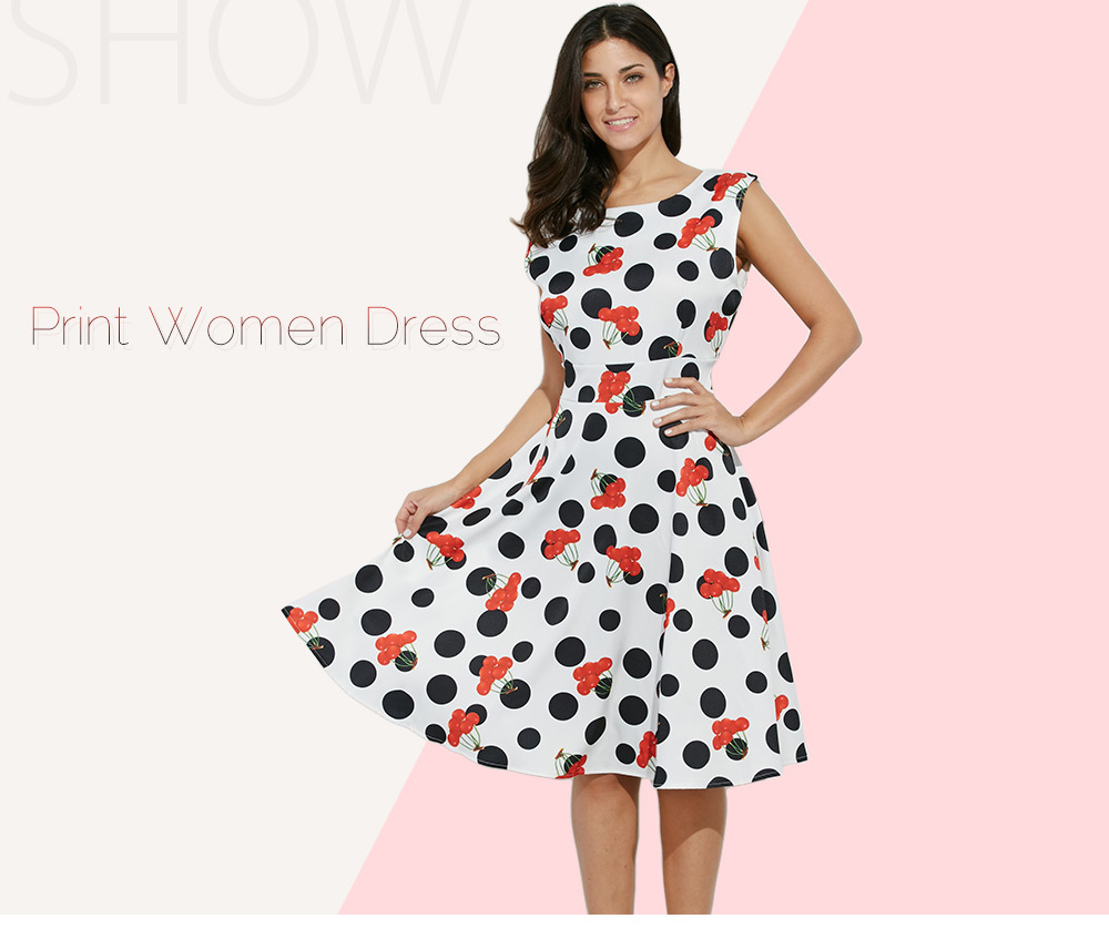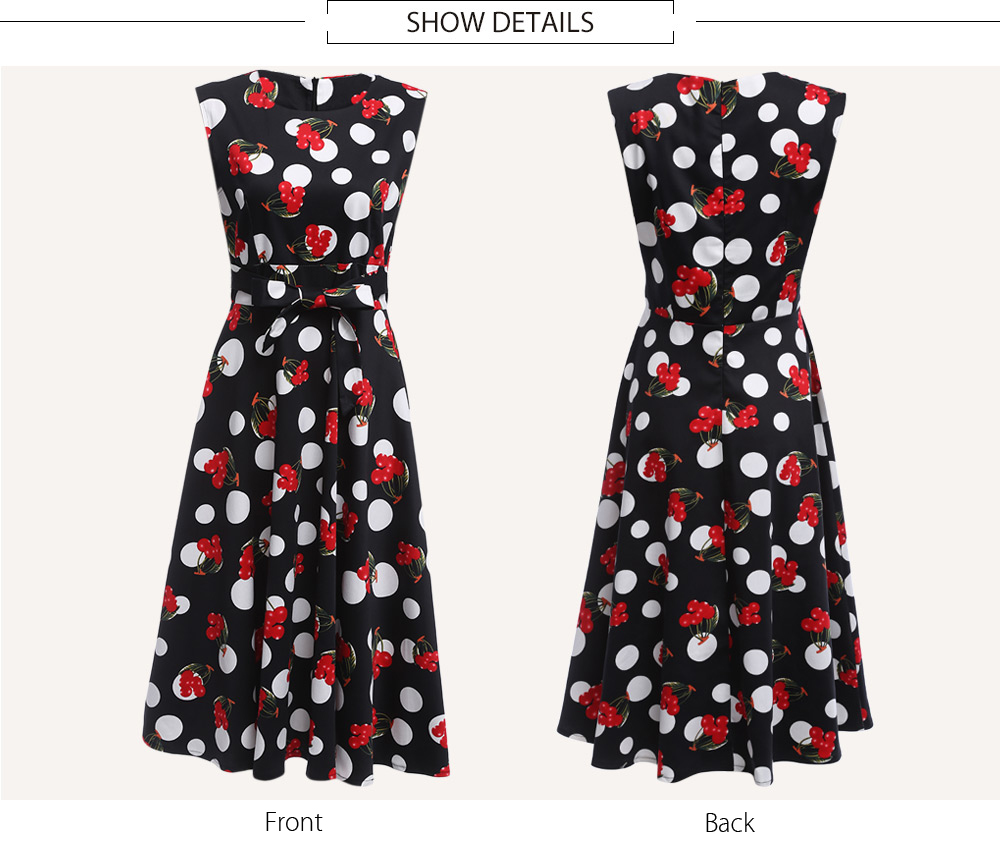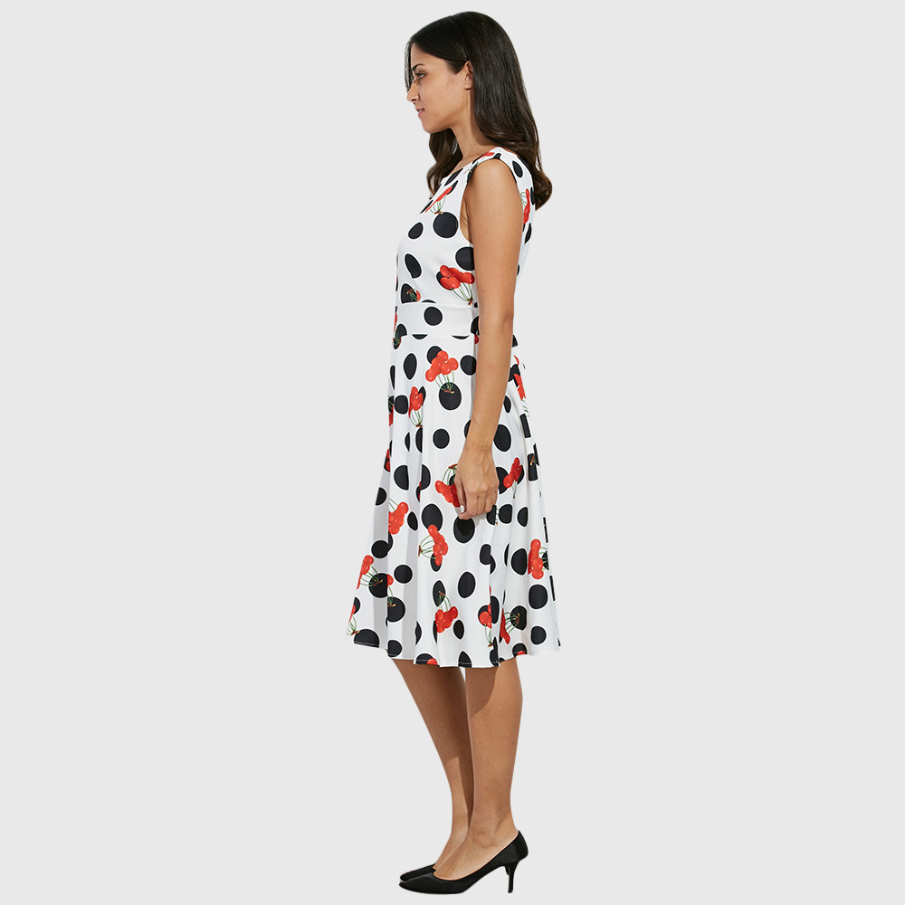 Retro Style Round Collar Sleeveless Allover Print Dress for Ladies